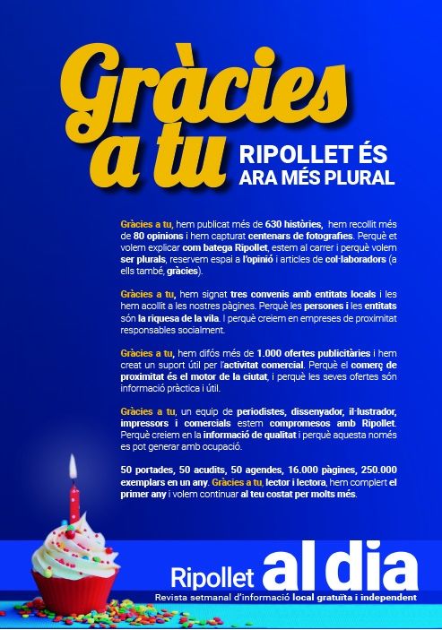 El dia 21 va complir-se un any just de la primera sortida de la revista Ripollet al dia, si bé la feina per recuperar la capçalera havia començat molt abans.