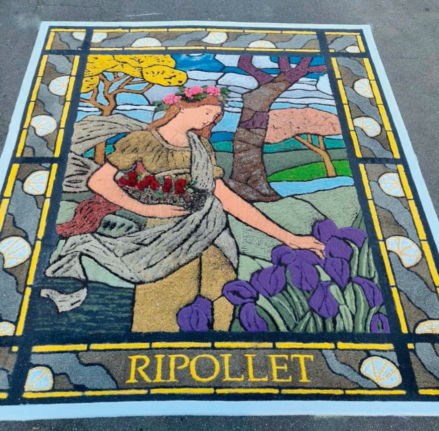 L’elaboració de la catifa de Ripollet, un vitrall modernista amb el títol de “La primavera”, es va allargar durant 9 hores. Per crear-la, els ripolletencs van utilitzar sal i serradures tenyides de diferents colors, flor natural i seca, verdures, pasta crua, pigments naturals i terra. L’entitat ripolletenca ha agraït la càlida acollida a l’associació amfitriona Santa Maria de Guspini. —RAD