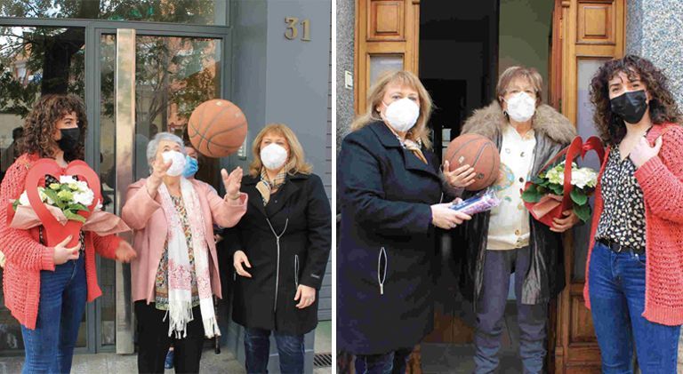 La Mercè Argenté i la Maria Barcons han rebut un bouquet amb una targeta on es llegia: «Juntes, junts, som un equip. Som un club. Gràcies per ser-hi!», junt amb una mascareta i una bufanda del CB Ripollet.